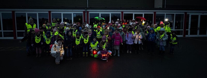 Um das Gefahrenbewusstsein in der gesamten Bevölkerung und speziell unter den Verkehrsteilnehmerinnen und -teilnehmern in der dunklen Jahreszeit zu schärfen, sind viele Schülerinnen und Schüler am 04. Dezember mit Reflektoren, Warnwesten, heller Kleidung, Blinklichtern oder Lichterketten ausgestattet, zu ihrer Schule gegangen.