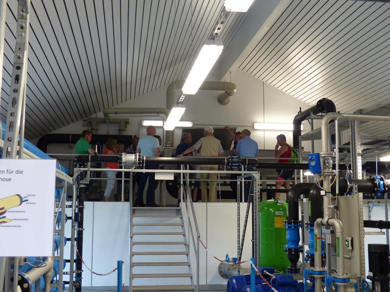 Dabei bestand zum einen die Möglichkeit, mit dem gemeindeeigenen Kleinbus zur Brunnenfassung zu fahren und zum anderen, sich die Anlagentechnik des im Jahr 2014 neu errichteten Wasserwerks durch die Mitarbeiter der Gemeindewerke über Mikrofon und Headsets vermitteln zu lassen.